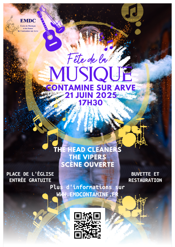 Nous avons le plaisir de vous annoncer que nous organiserons la 2e édition de la Fête de la Musique devant l'église de Contamine sur Arve le samedi 21 juin 2025 à partir de 17h30.